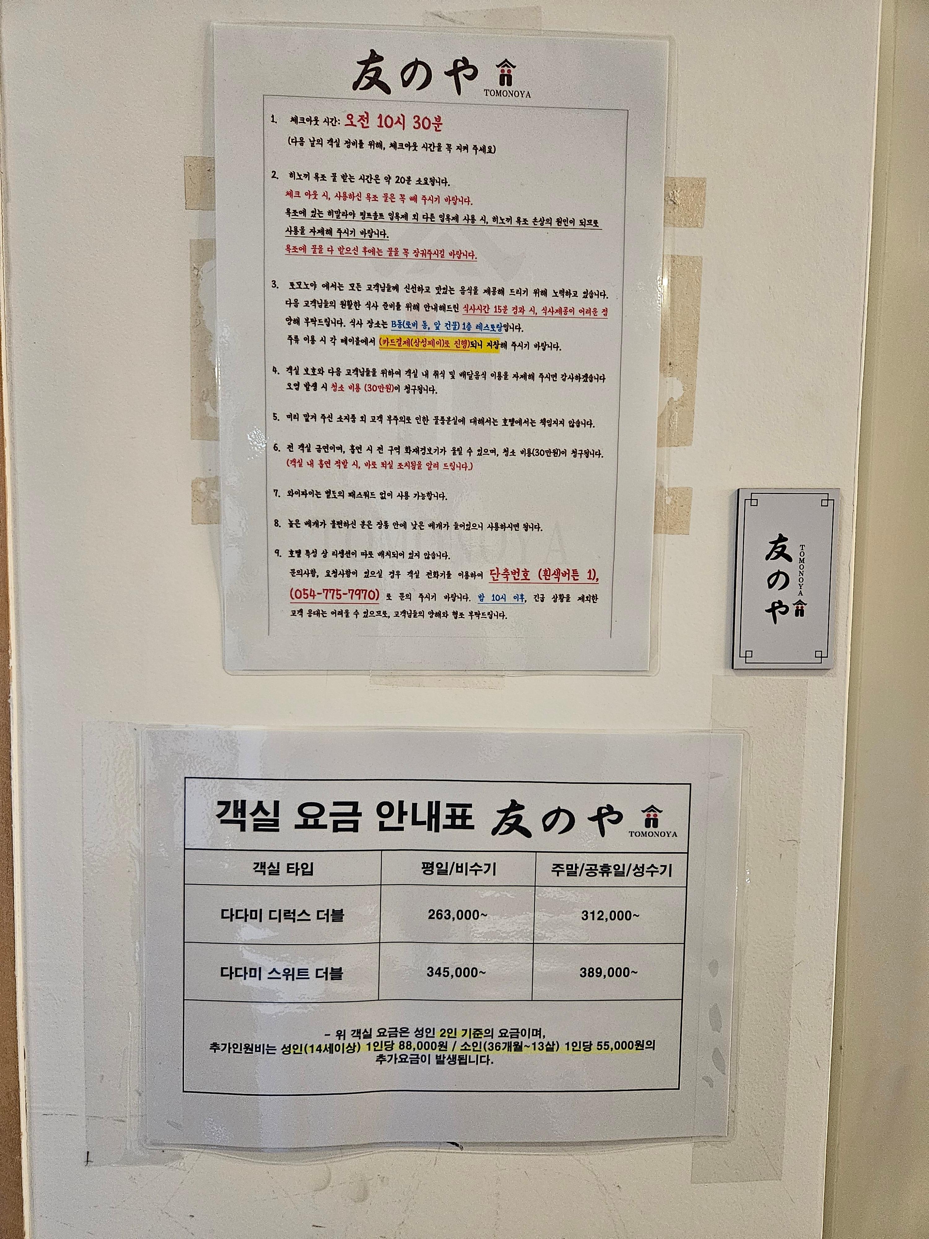 객실 주의사항 및 객실요금표도 로비에 안내되어 있습니다~