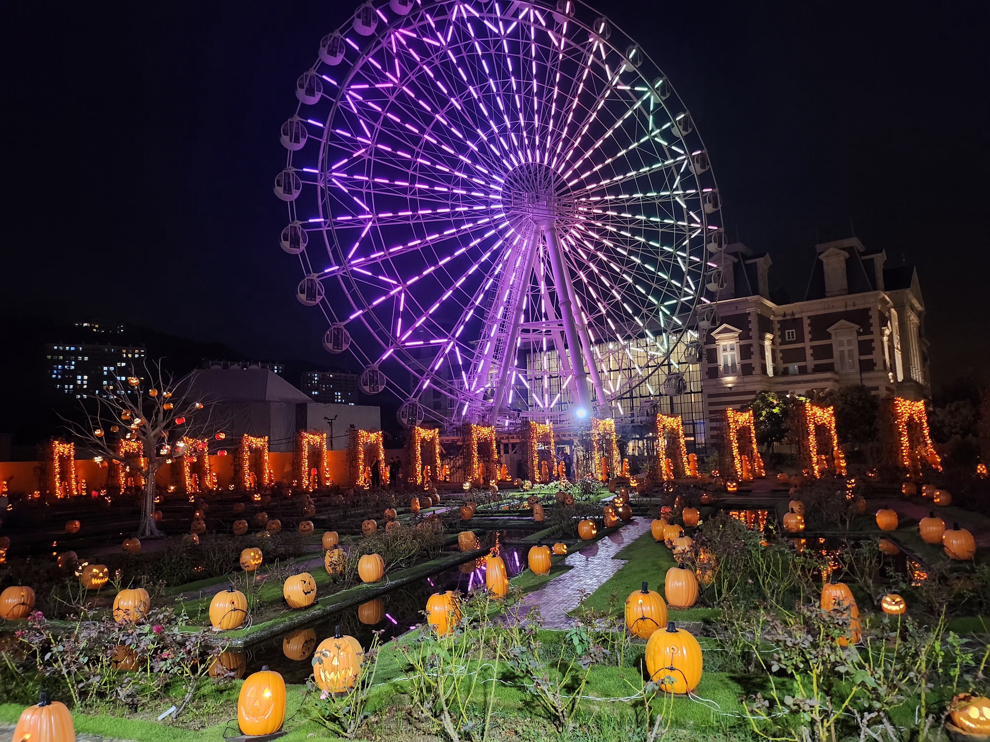 수로 따라 이동하는 캐널 크루즈와, 할로윈 테마 장식을 한 트레인이 운행되며, 날씨와 관계없이 운행됩니다.