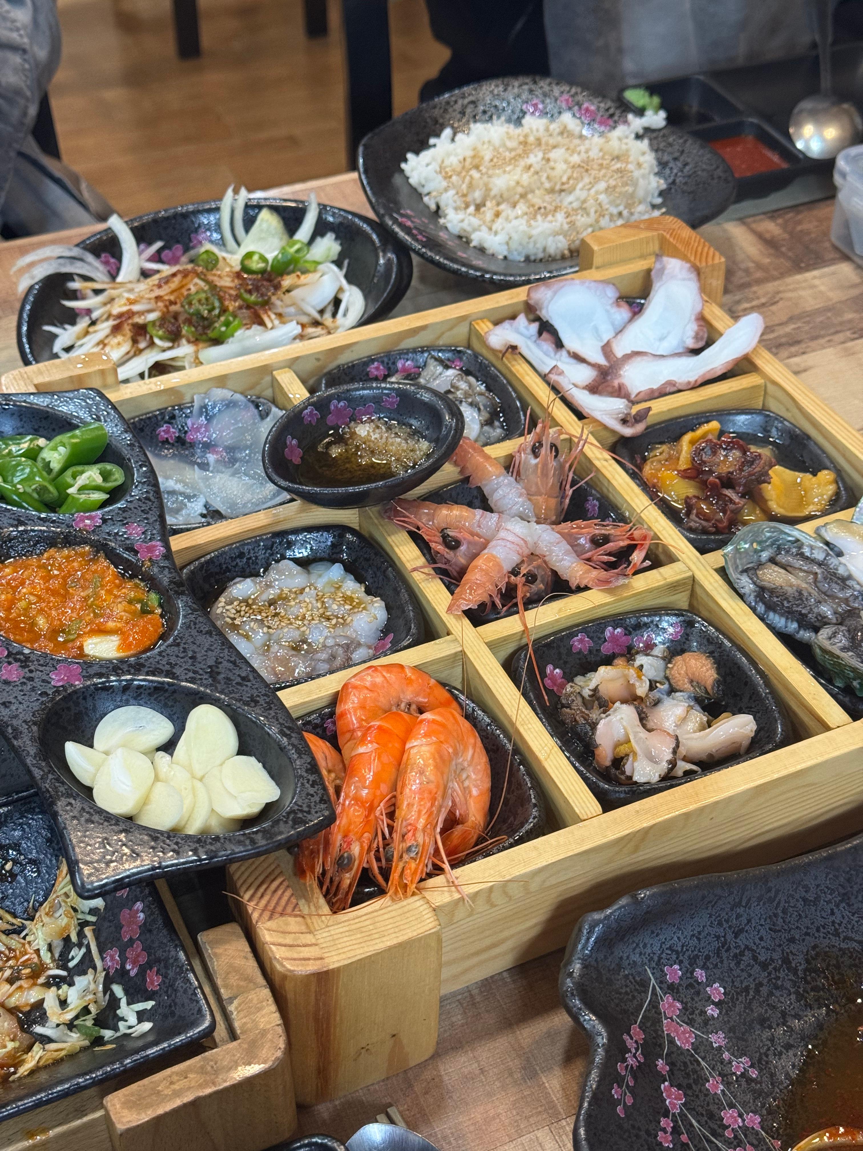 새우, 멍게, 전복 등등 이렇게 신선하고 깔끔하게 차려지며 다양한 해산물을 취향에 맞게 먹을수있어 정말 좋았습니다. ㅋㅋ