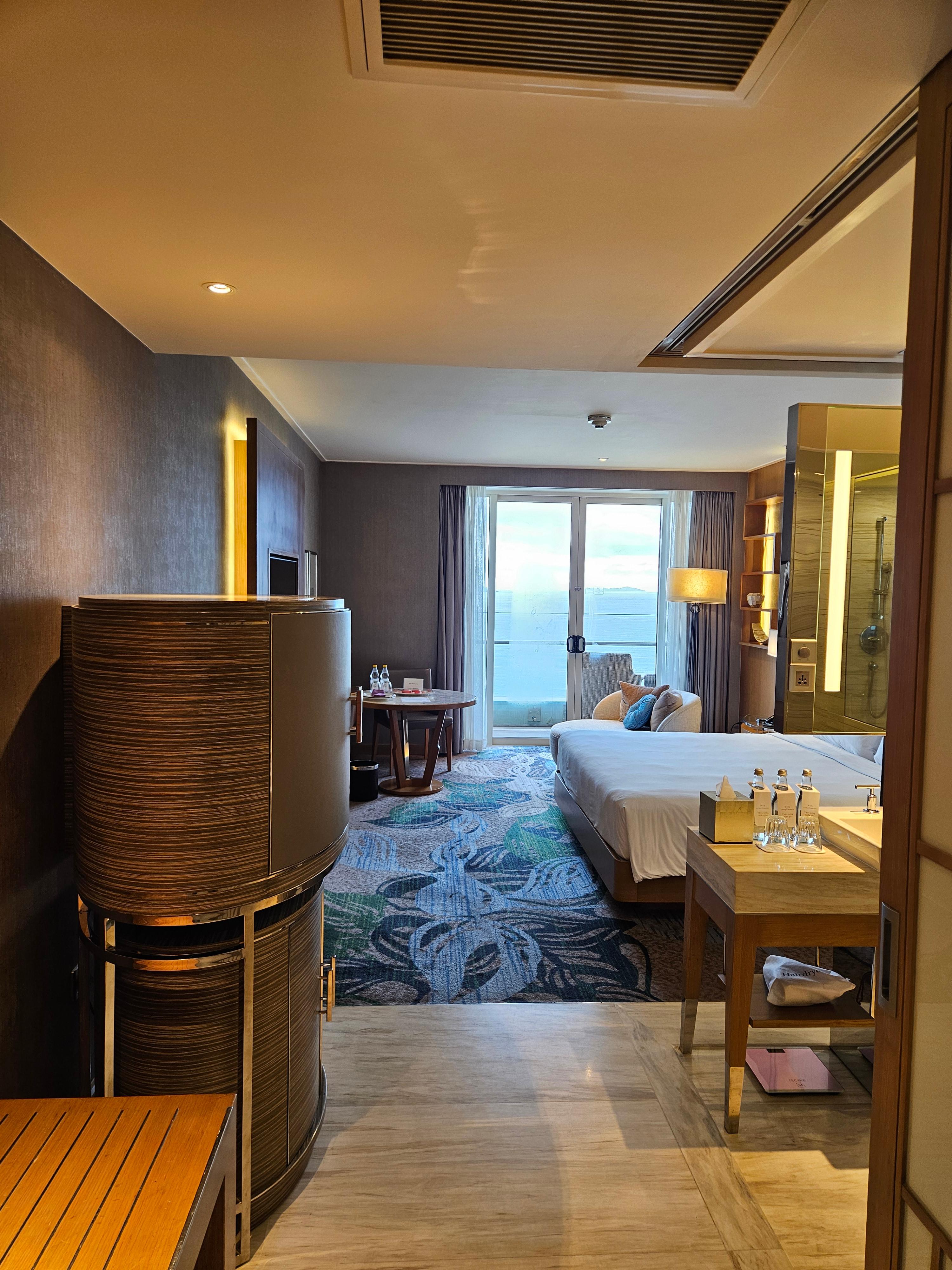 야외수영장 구경을 마친 후 오션뷰 객실로 배정받았습니다.